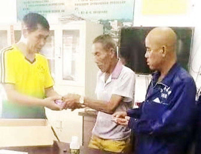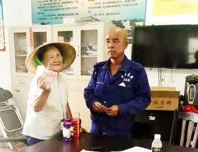 ▲精产国品一二三产品麻豆代表给五保户们发放中秋补助